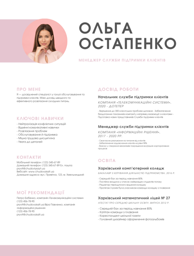 (завантажте наш приклад резюме або складіть в довільній формі)